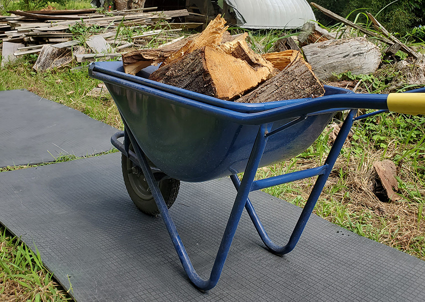 ぬかるみやわだちができやすいビニールハウス周りの養生事例。軽トラや台車の走行や出荷作業時の足場養生で作業の効率化と安全対策につながります。重機等の車両走行がある場合は転圧してからのご使用をお勧めいたします。